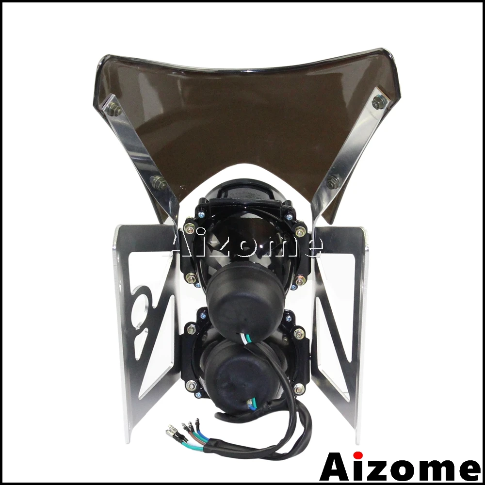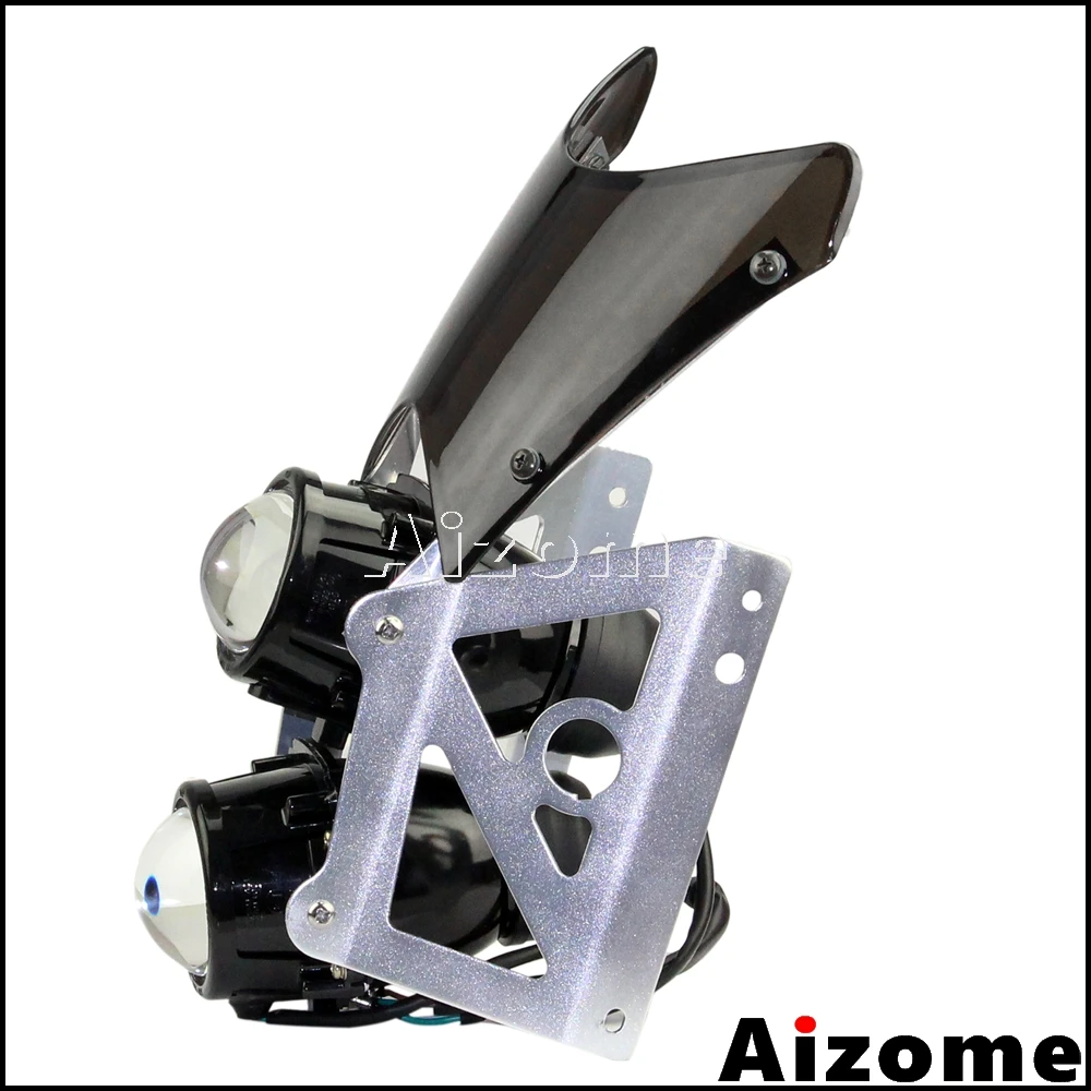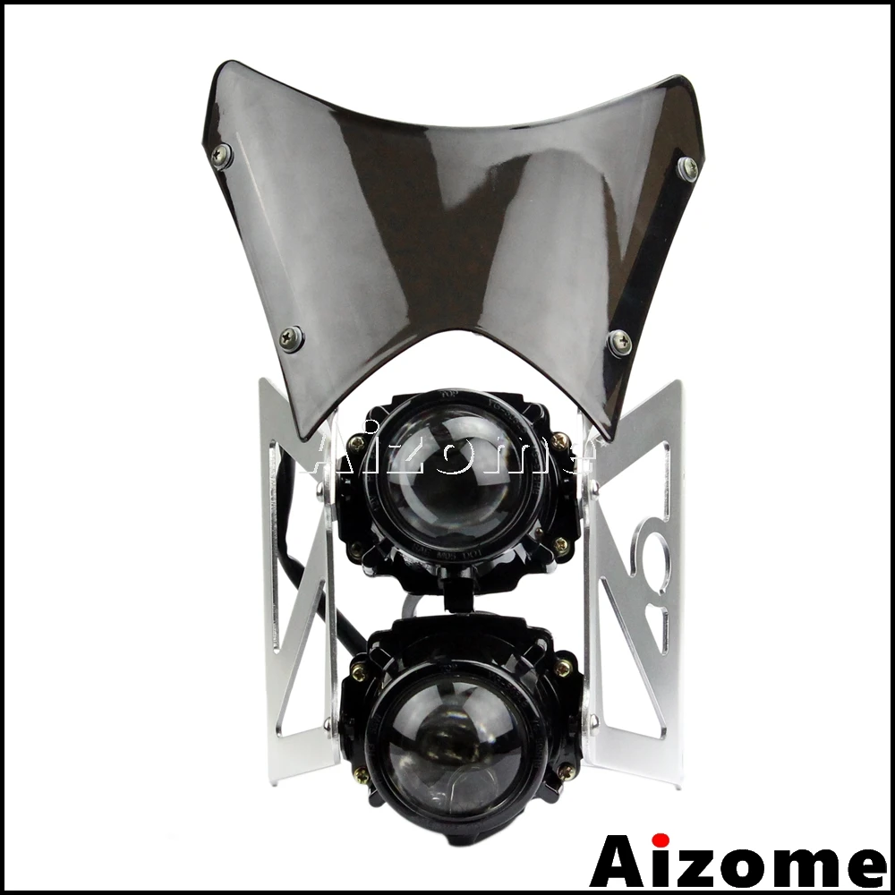 Universal Motorcycle Dirt Bike Twin Headlight w/ Bracket Streetfighter Projector Dual Sport Headlamp Headlight w/ Wind Screen : Click Here